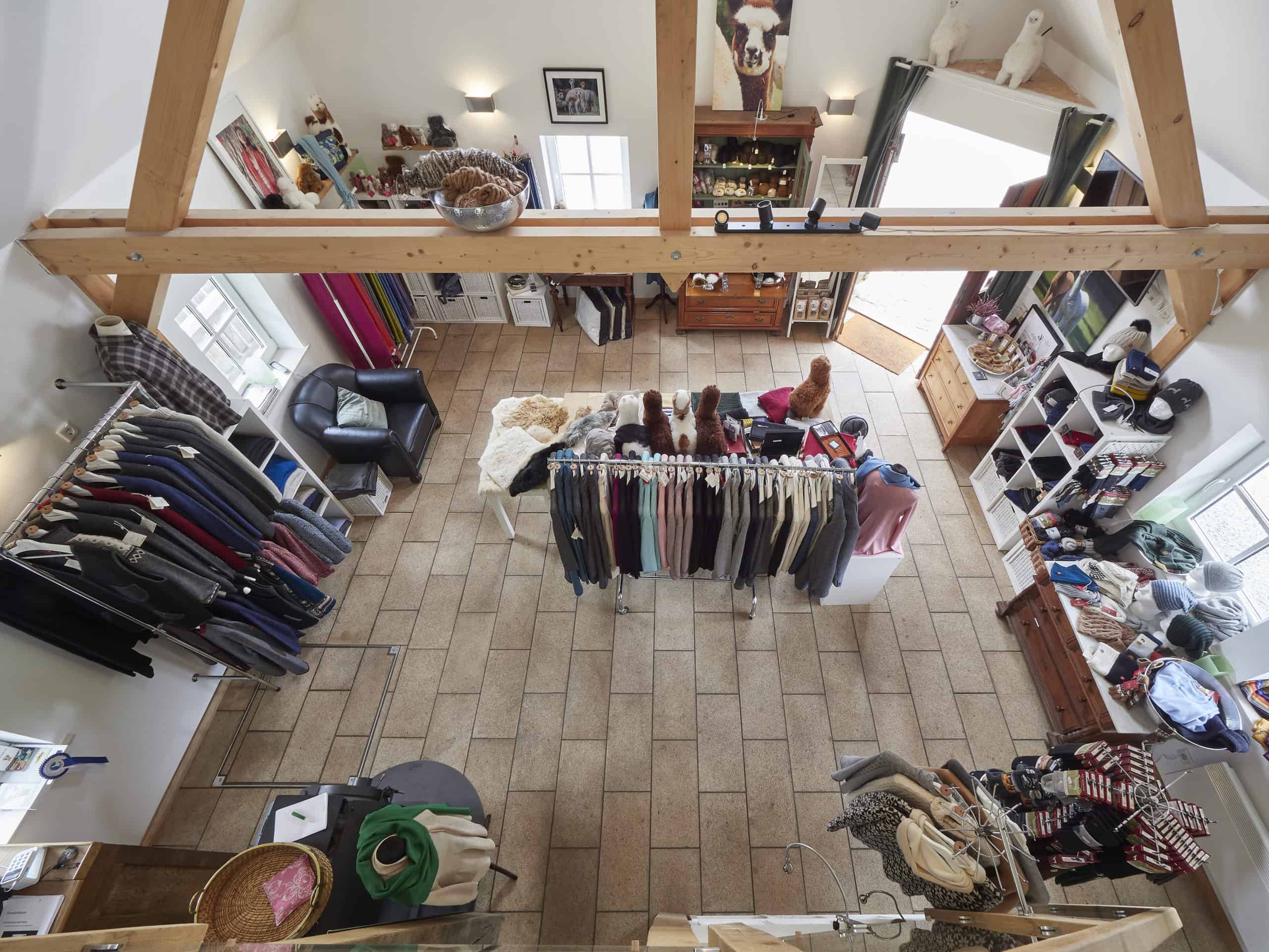 In unserem Hofladen präsentieren wir Euch Textilien aus Alpakafasern, einer der hochwertigsten Naturfasern. Die sehr dünnen Fasern sind hohl, wodurch sie Körperwärme besonders gut speichern und hervorragend vor Kälte isolieren. Gleichwohl eignen sich dünne Kleidungsstücke wegen der hohen Isolierungswerte auch als Sommermode, denn die Wärme wird gut abgeleitet.