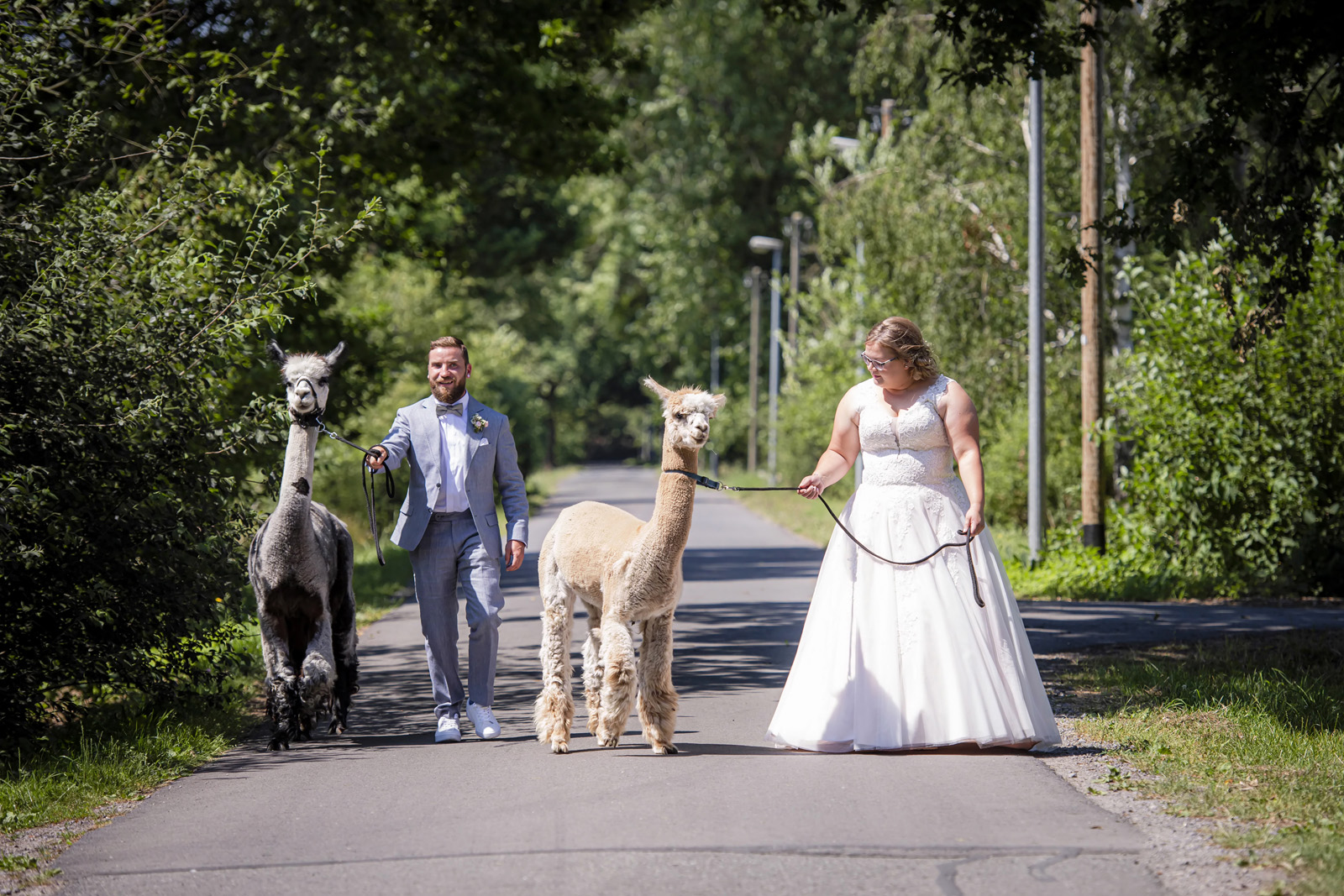 Das Führen eines Alpakas mit einem Kinderwagen geht leider nicht. Aber als Begleitperson ohne ein “eigenes” Alpaka ist das kein Problem.